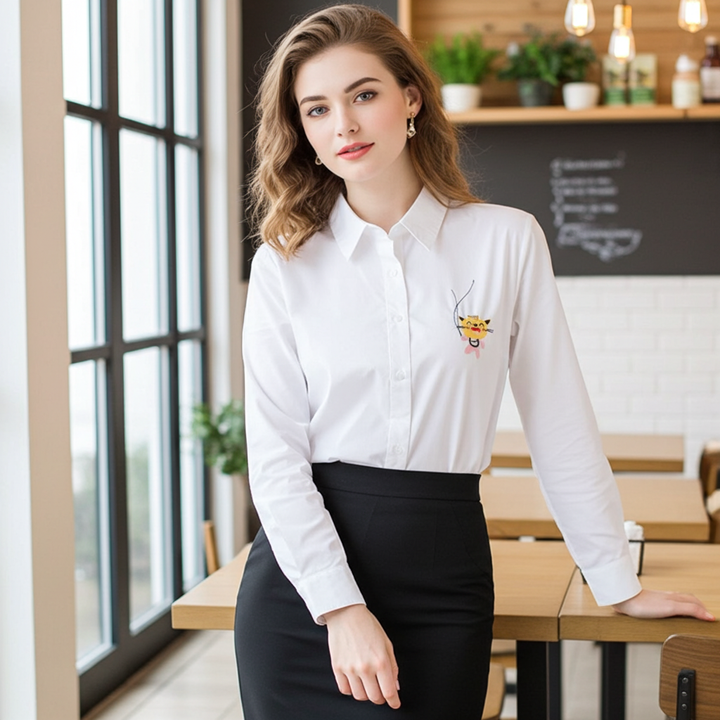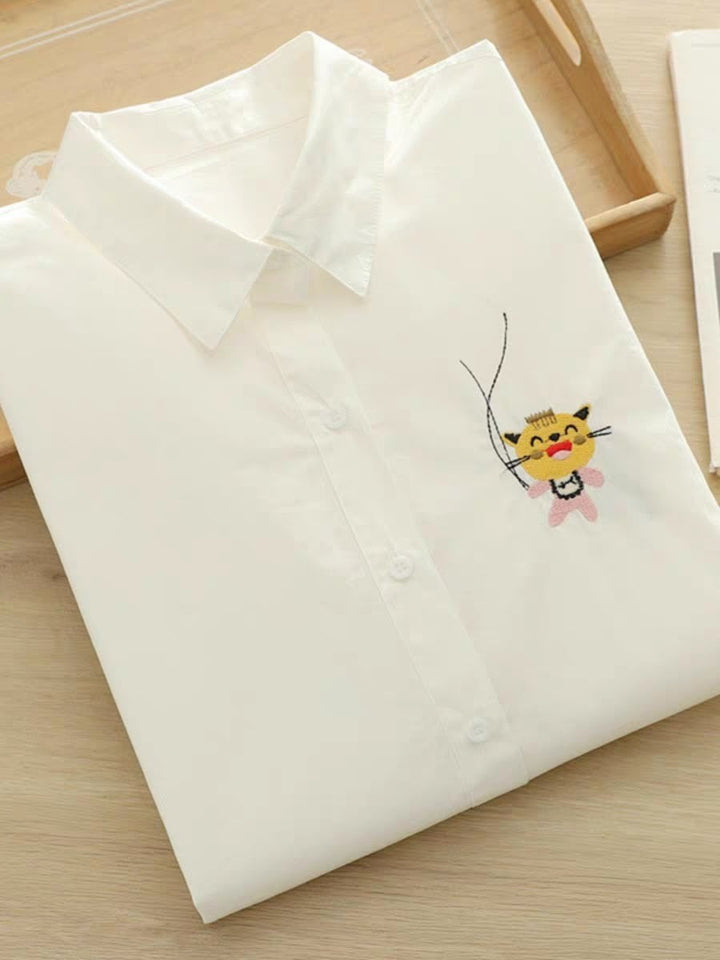 đș Womenâs Full Sleeve Embroidered Cat Shirt â Cute & Casual Style