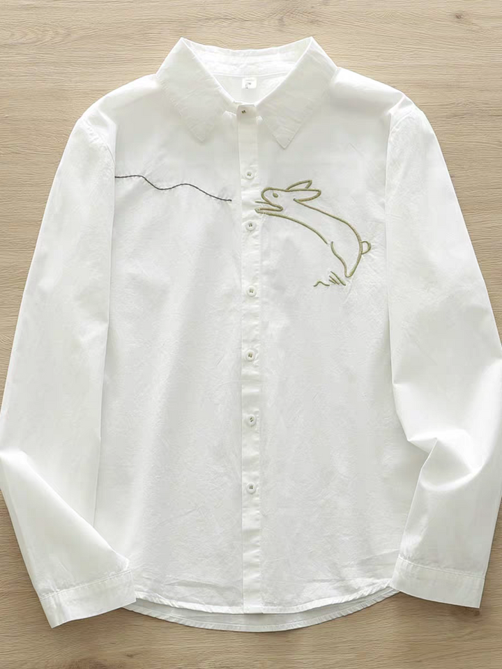 women White Embroidered Bunny Cotton Shirt