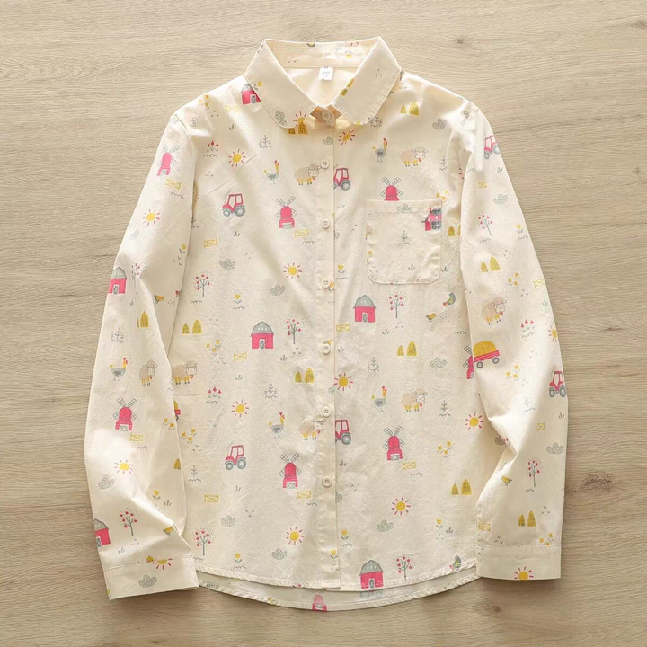 Women Countryside Charm Shirt – Soft Cotton Pastel Print